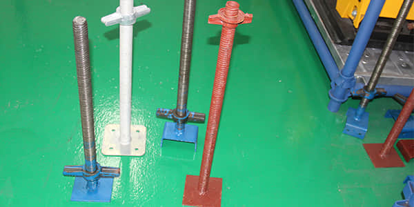 - Effectuer des ajustements : La tige filetée et l'écrou à vérin réglable permettent des réglages précis de la hauteur pour atténuer les différences de niveau du sol, garantissant que les éléments verticaux (poteaux) du système d'échafaudage démarrent parfaitement d'aplomb et de niveau.
