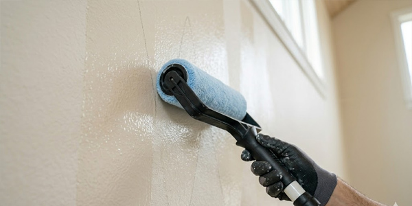 Pour une répartition uniforme, utilisez la technique du « W » ou du « M ». Commencez en haut de la partie accessible et tracez un grand « W » sur le mur, puis comblez les espaces sans lever le rouleau.