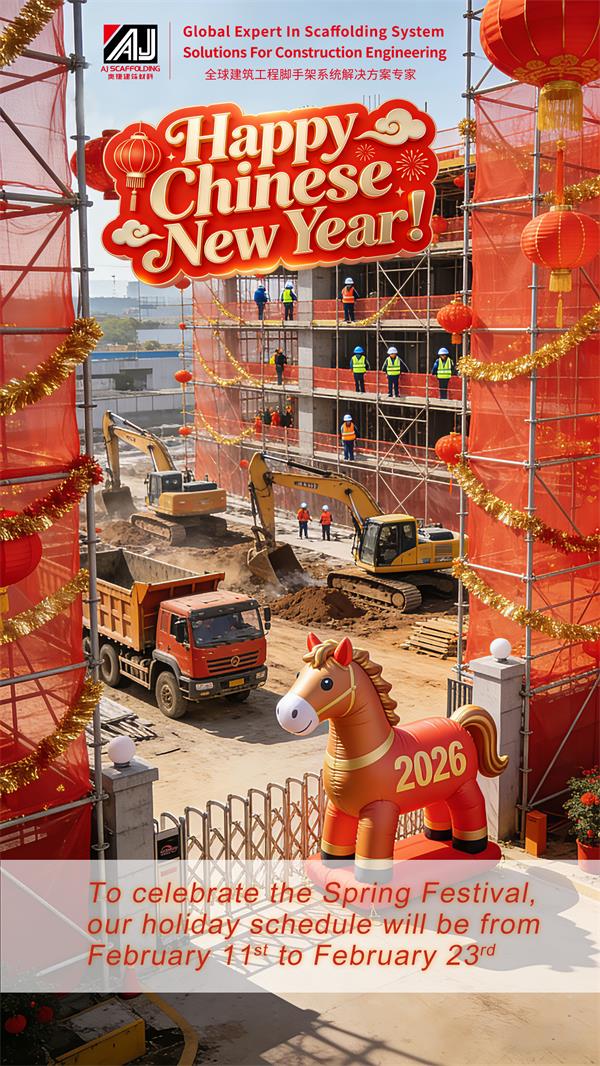 À l'approche du Nouvel An lunaire 2026, nous tous chez Échafaudages AJ Nous tenons à vous adresser nos salutations les plus chaleureuses et nos remerciements les plus sincères pour votre confiance et votre soutien constants.
