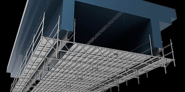 • System Scaffolding: Ringlock or Cuplock standards and ledgers adapted for hanging applications.