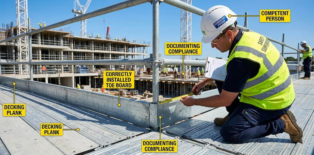 - Conformément aux normes de sécurité internationales et aux normes de l'OSHA, des plinthes de protection sont obligatoires sur toute plateforme d'échafaudage située à plus de 3 mètres (dans certaines juridictions, 1,8 mètre ou 2 mètres) au-dessus d'un niveau inférieur, notamment lorsque des personnes doivent travailler ou circuler sous l'échafaudage. En cas de risque de chute d'outils ou de matériaux, les plinthes de protection sont obligatoires quelle que soit la hauteur.